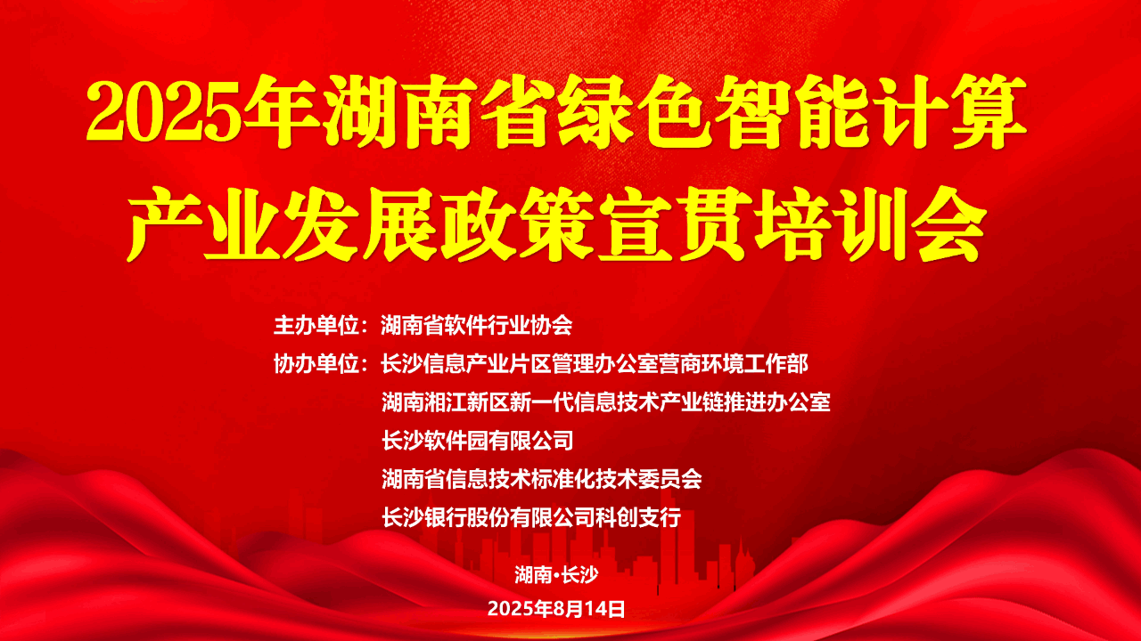 在數字經濟與新質生產力加速融合的關鍵階段,綠色智能計算產業正成為引領區域經濟高質量發展的核心引擎。為推動湖南省“三位一體”綠色智能計算產業頂層設計體系落地見效,凝聚產業發展合力,2025年8月14日,由湖南省軟件行業協會主辦,長沙信息產業片區管理辦公室營商環境工作部、湖南湘江新區新一代信息技術產業鏈推進辦公室、長沙軟件園有限公司、湖南省信息技術標準化技術委員會、長沙銀行股份有限公司科創支行協辦的“2025年湖南省綠色智能計算產業發展政策宣貫培訓”在世界計算?長沙智谷成功舉辦。省內外重點科研院所、產業園區、頭部企業及產業聯盟代表共百余人參會,共同解碼政策紅利、共探產業升級路徑。